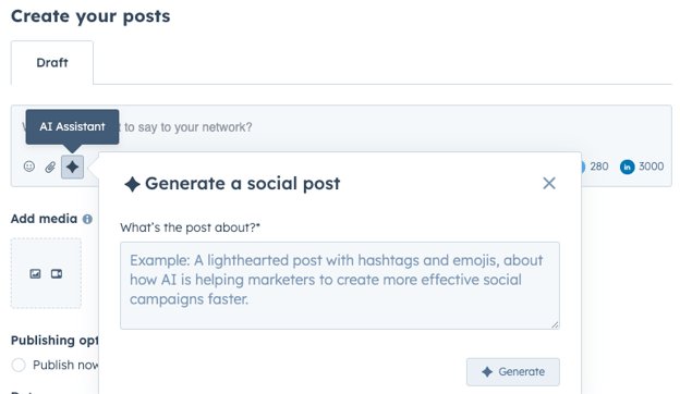 Enhance your social media management with the new AI assistant, directly integrated within the social media tool. Remember, AI assistants are best utilized for brainstorming and generating ideas, not replacing your own expertise.