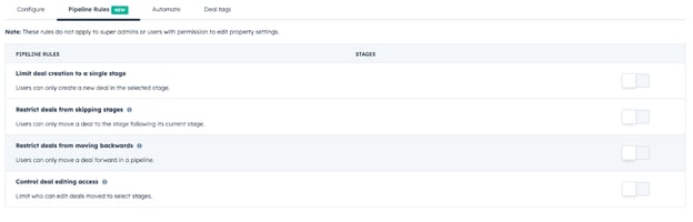 Gain greater control over your sales pipeline with the introduction of Deal Pipeline Rules. Define specific rules for each pipeline, such as restricting deal creation to a single stage, preventing skipping stages, or controlling editing access. This ensures a consistent and organized sales process.